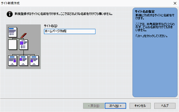 作成するページ類がほぼ完成してから「サイト」を作成してください。