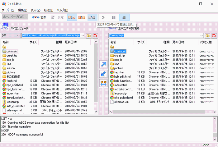 転送が終わったら、必ずブラウザで確認してください。(ブラウザに以前のイメージが残っている場合がありますので、ブラウザの「最新の情報に更新する」をクリックしてください)