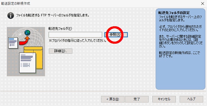 フォルダ指定です。参照で、プロバイダの指示に従ってください。