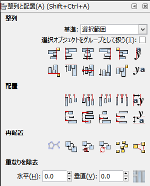 整列・配置のダイアログが表示されます。