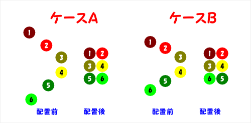 ケースAは期待通りですが、ケースBでは5と6の順番が異なります。