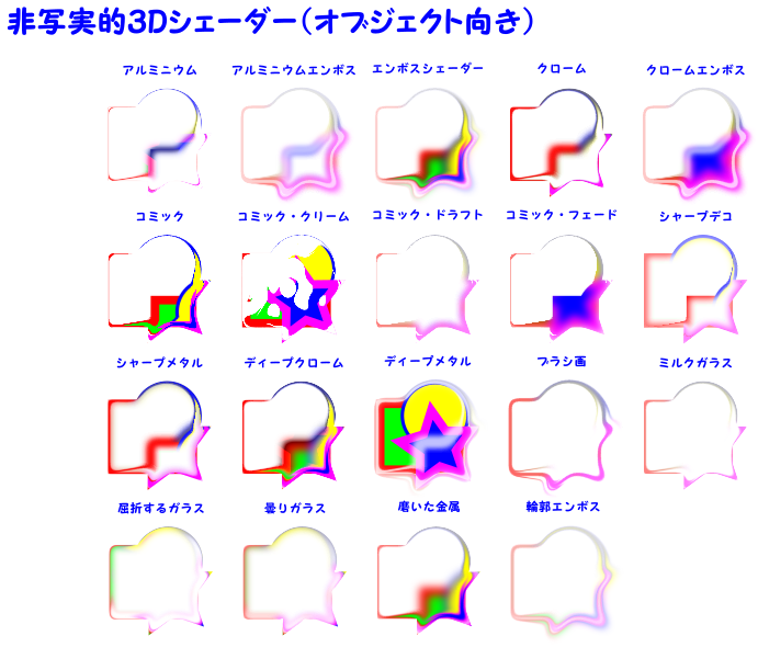 沢山の種類があります。通常のオブジェクト向きのものとビットマップ画像向きのものがあります。