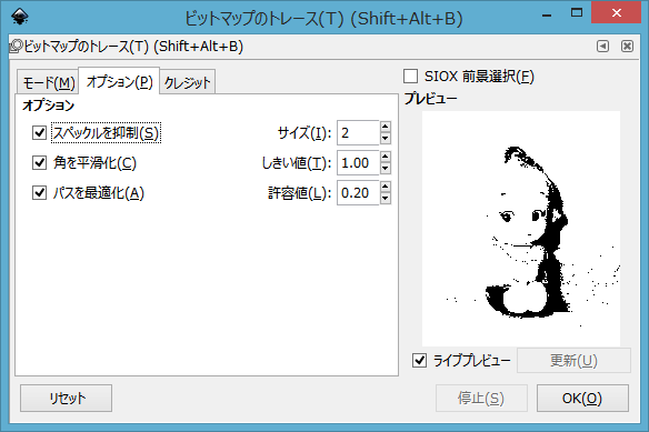 Inkscapeには、ビットマップデータをベクトルデータに変換するための2種類のトレース機能があります。