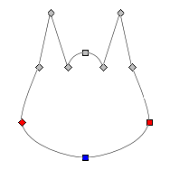 耳の頂点になるノード(赤)を選択 → カーソルキー ↑ を適当な回数押す → 中間のノード(黒)を選択 → ツールコントロール