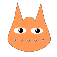 左右対称のキャラクターです。主としてベジェ曲線で構成していますが、左右対称のベジェ曲線は、初心者には意外に難しいものです。ここでは、Inkscapeのノード操作機能を使って作ります。