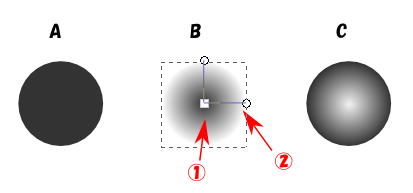 B フィル/ストロークでフィルに放射グラデーション → ツールボックス