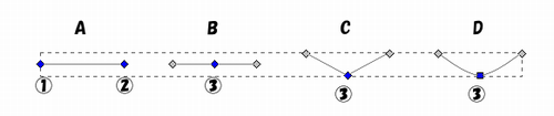 → 両端のノードを選択する(囲むようにドラッグまたはひとつクリックしてShift+他をクリック) → ツールコントロール