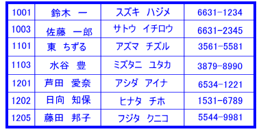 EXCEL で作る名簿と同じです。EXCELでは、1行目に表題を設定しますが、データベースでは不要です。
