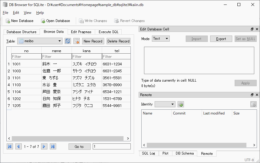 「Open Database」で、kaiin.dbを開く → 「Browse Data」をクリック