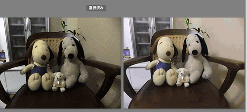 ・・・2枚の異なった写真が表示されます。編集されるのは、上部に選択済みと表示された写真です。