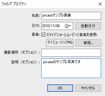 Picasa オプションの確認
