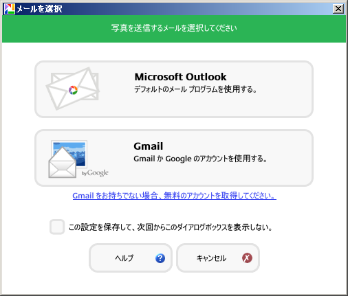 画像の送信時に毎回設定・・・とメール送信時にメーラーを選択します。