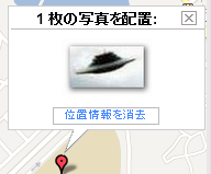 その場所の経緯度が写真に設定されます。(Exif情報 GPS緯度、経度)